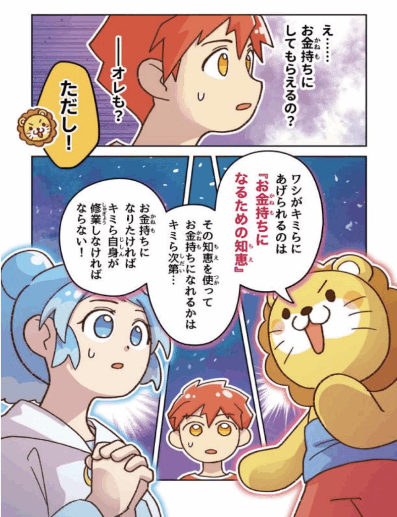 「稼ぐ・貯める・増やす・守る・使う」という5つのお金の力を学んでいく冒険マンガです。